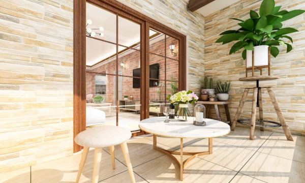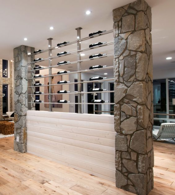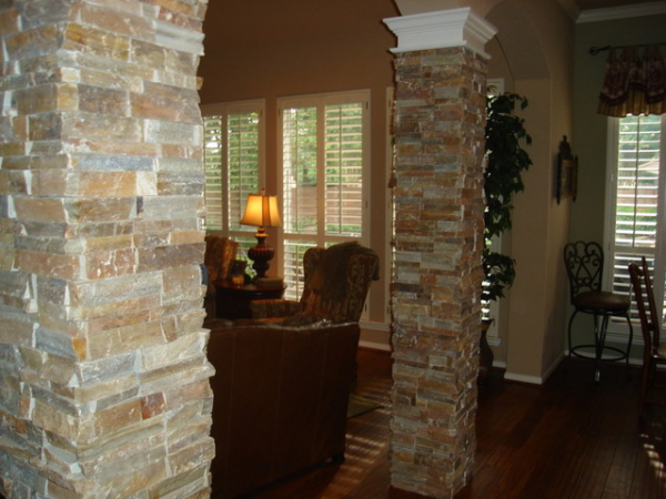 Jika memungkinkan, pertimbangkan untuk menambahkan pilar-pilar batu alami di ruang tamu. Ini dapat memberikan nuansa klasik dan monumental.