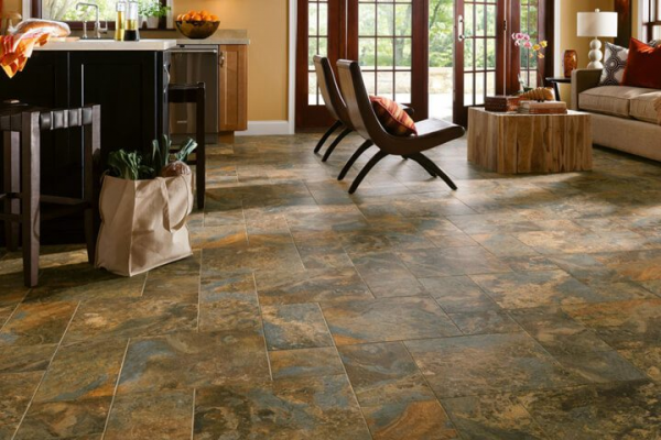 Gunakan batu alami sebagai material lantai ruang tamu. Ini bisa menjadi batu marmer, granit, atau batu kapur. Lantai batu alami akan memberikan tampilan yang tahan lama dan menambahkan sentuhan keindahan alami.