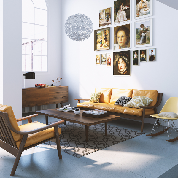Pilih seni dinding dengan bingkai sederhana atau cetakan skandinavia untuk mempercantik dinding ruang tamu.