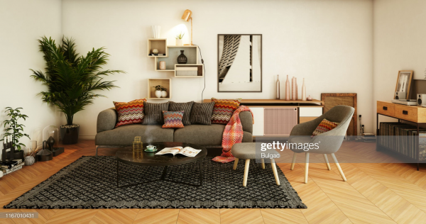 Pilih palet warna netral seperti putih, abu-abu, dan beige untuk dinding dan furnitur. Tambahkan sentuhan warna hangat seperti oranye atau kayu alami untuk memberikan ruang tamu Anda sentuhan akhir yang lembut.