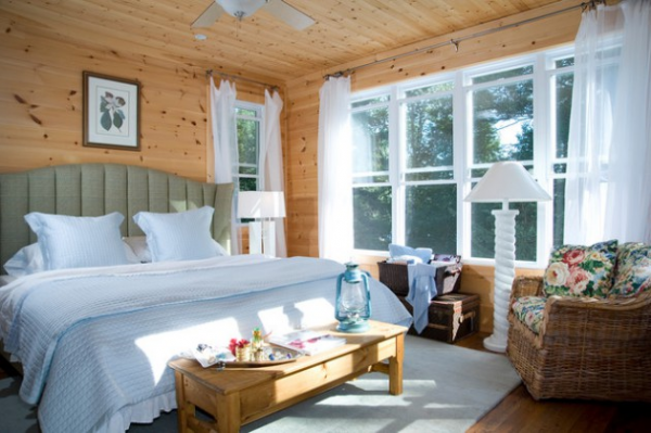 Kamar bergaya feminin dengan sentuhan rustik dan bangku gantungnya yang cantik.