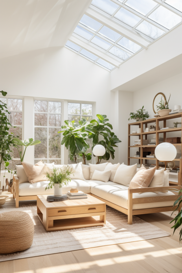 Pilih palet warna alami dan netral seperti putih, abu-abu, beige, cokelat muda, dan hijau daun. Warna-warna ini menciptakan dasar yang sempurna untuk tampilan organik.