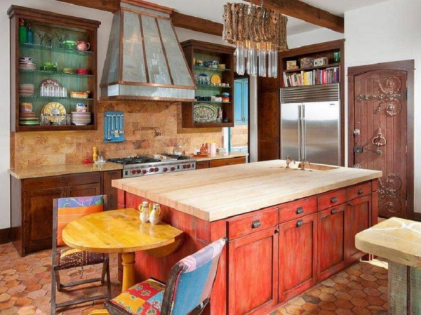 - - Dapur eklektik dapat memiliki tampilan yang unik dengan memadukan berbagai elemen dekoratif, seperti kabinet kayu yang dicat dengan warna cerah, backsplash yang dipoles dengan ubin vintage, dan peralatan dapur dari bahan alam seperti kayu atau keramik. - - Kombinasikan juga dengan peralatan dapur modern seperti microwave, oven, dan mesin pencuci piring untuk kesan lebih modern.