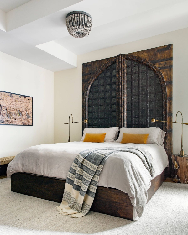 - - Kamar tidur dengan sentuhan eklektik dapat mencakup kombinasi furniture modern dan vintage. Misalnya, tempat tidur modern dengan dinding yang dihiasi wallpaper floral atau dinding bata yang dipoles dan dipertahankan tampilan aslinya. Kombinasikan juga dengan furnitur lain seperti meja rias antik atau lampu gantung mewah yang memberikan nuansa glamor.