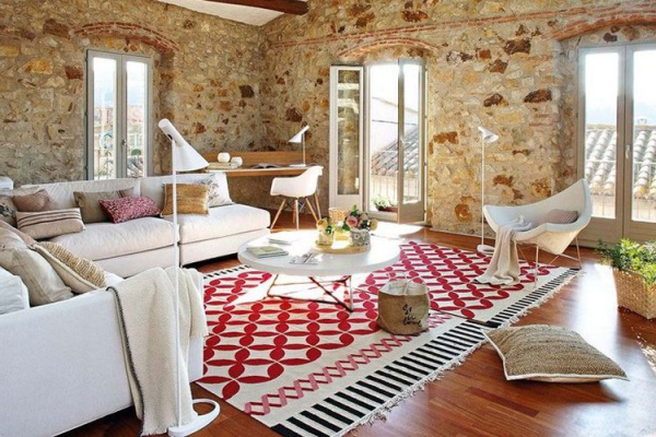 Interior rumah mediterania dengan dinding batu alam yang menarik bukan.