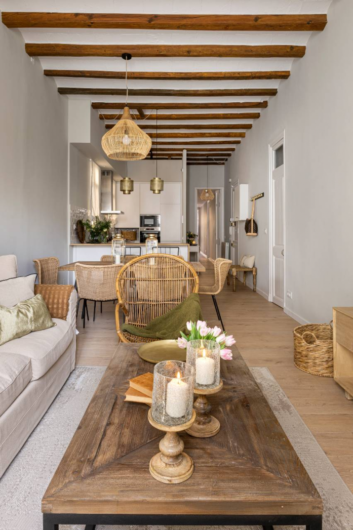 - - Pilih furnitur bergaya Mediterania Furnitur bergaya Mediterania umumnya memiliki karakteristik berupa motif klasik dan ornamen dekoratif yang kaya. Pilih furnitur yang terbuat dari kayu solid dan dipadukan dengan bahan seperti kain, kulit, atau anyaman rotan.
