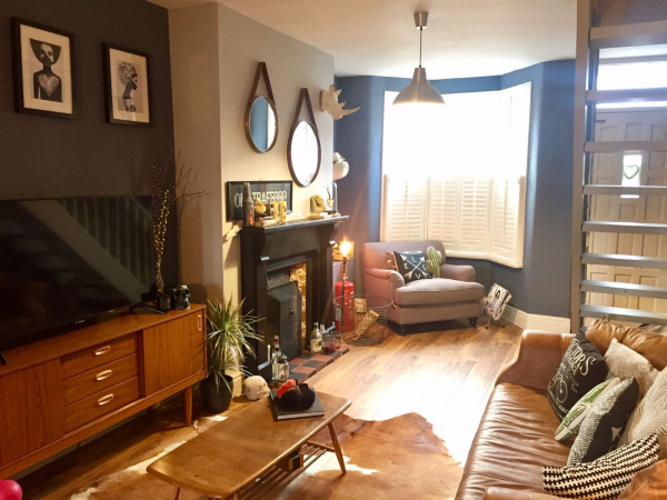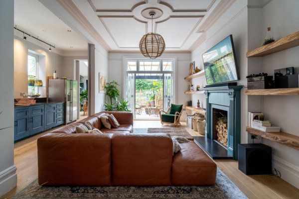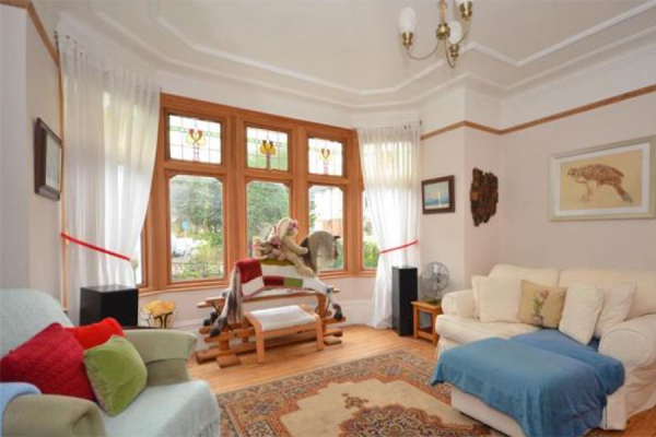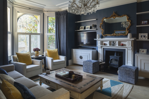Aksen kayu menambah hangat gaya ruang tamu edwardian.
