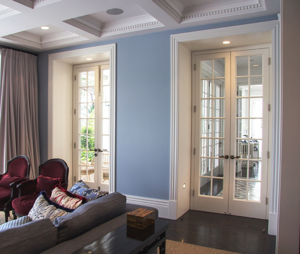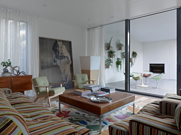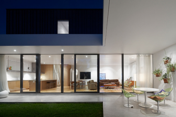 Kaca sebagai pemisah antara ruang tamu dan teras.