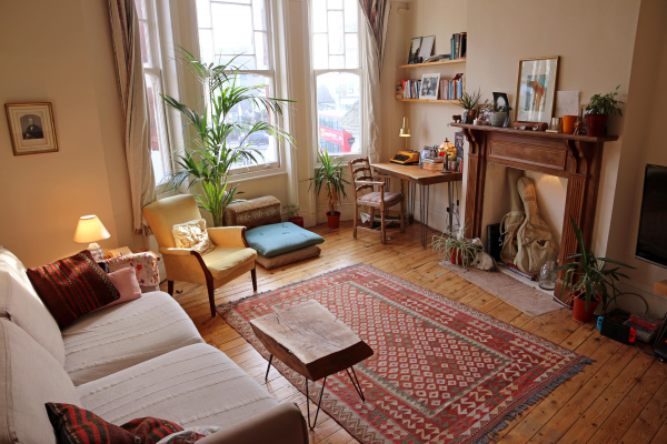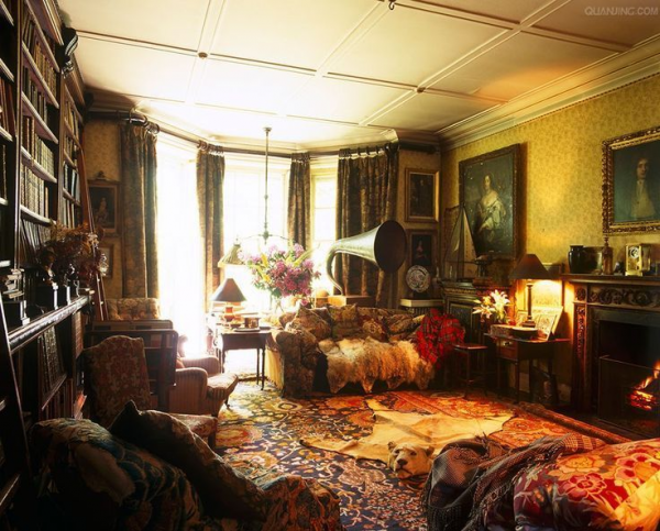 Ruang tamu edwardian dengan lantai permadani nya yang hangat.