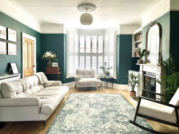 Ruang tamu gaya edwardian dengan nuansa hijau nya.