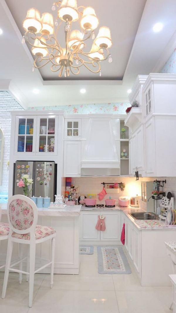 Dapur shabby chic yang feminim ya moms.