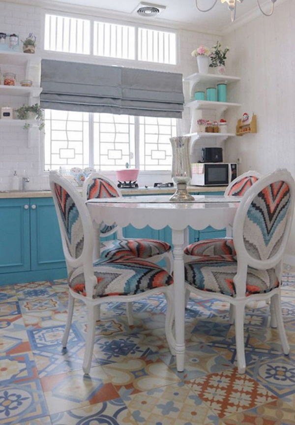 Dapur shabby chic dengan meja bundar vintage nya.