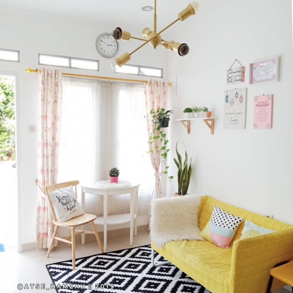 Ide ruang tamu shabby chic untuk renovasi rumah subsidi.
