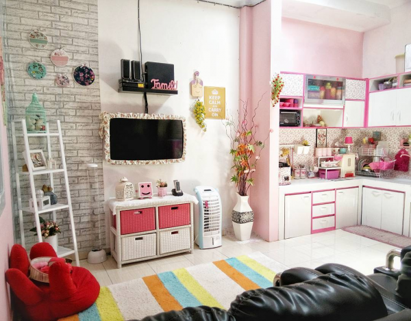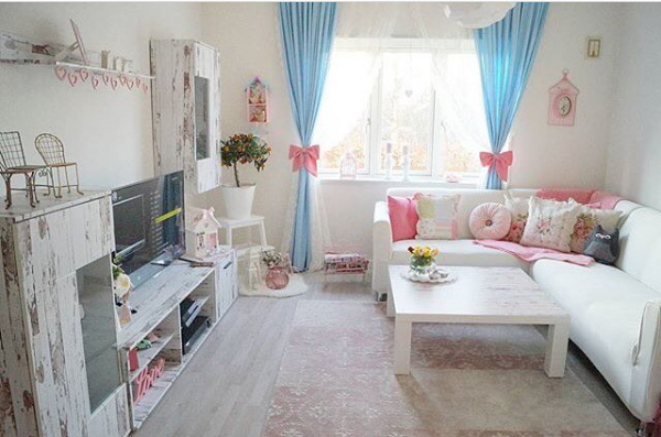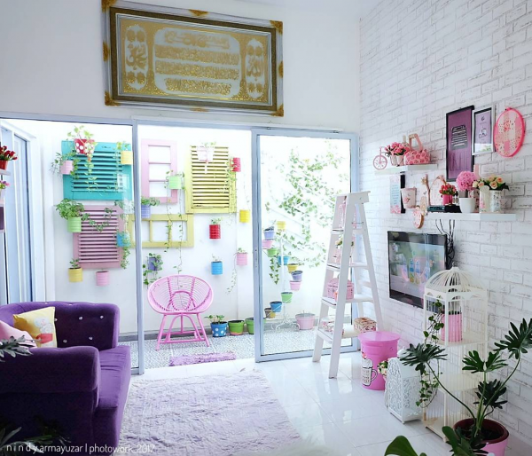 Interior shabby chic dengan nuansa pink.