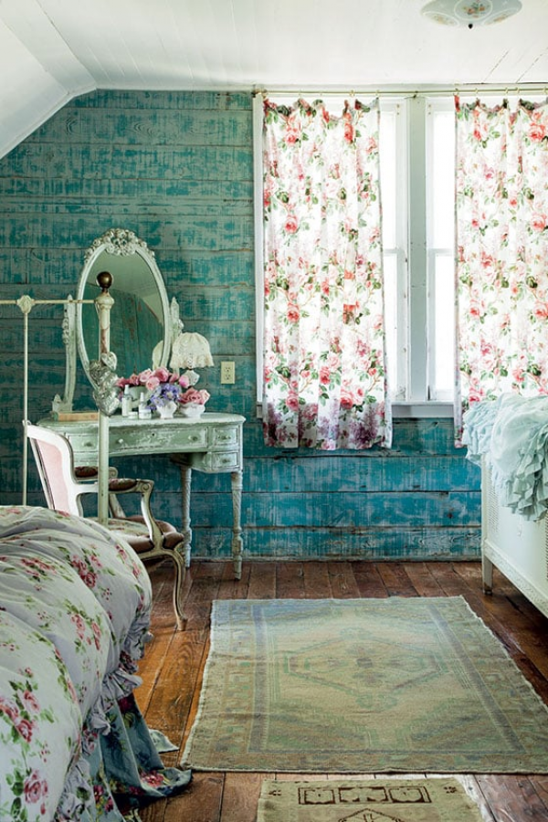 Gaya shabby chic sering menampilkan furnitur bekas atau lama yang telah dicat ulang dengan warna pastel atau warna gelap. Anda juga bisa menambahkan pernak-pernik seperti bunga atau kain toples untuk mendapatkan tampilan yang lebih girly.