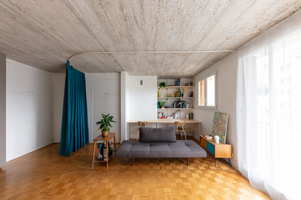 Menggunakan hordeng sebagai pemisah ruang yang praktis ya guys.