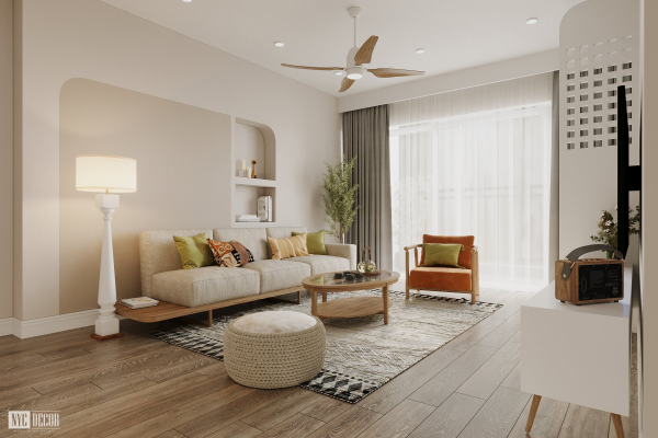 Ruang keluarga dalam desain interior Vietnam modern adalah pusat kehangatan dan kebersamaan keluarga. Penggunaan furnitur yang nyaman, dekorasi yang hangat, dan sentuhan warna alami menciptakan atmosfer yang mengundang kebersamaan.