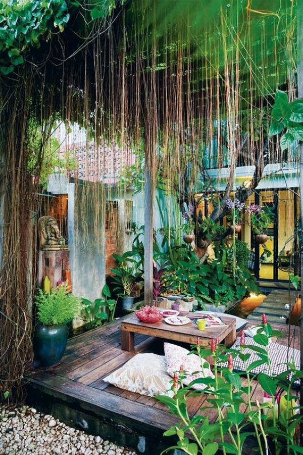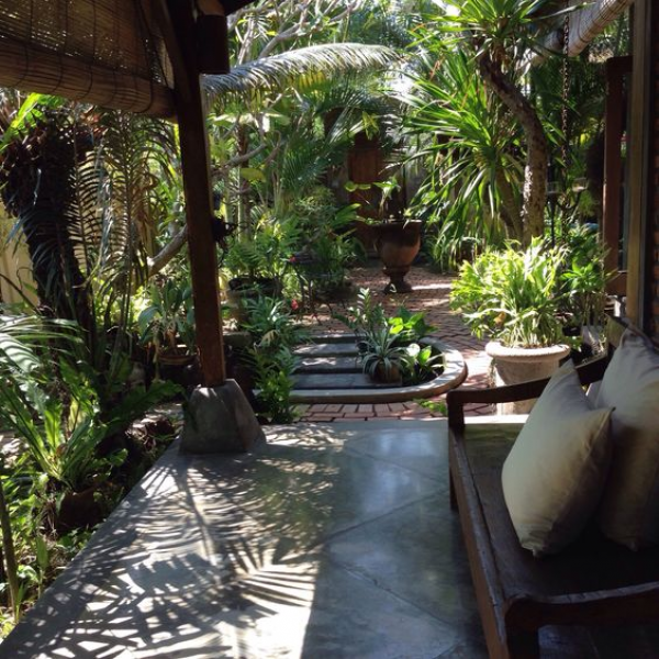 Taman ala Bali dengan tanaman yang merambat dan bunga eksotis nya.