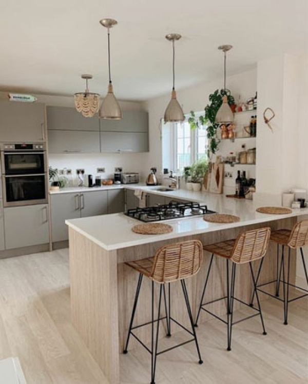 - - Dapur dengan mini bar yang alami: Pilih material alami seperti kayu atau batu bata untuk memberikan kesan alami pada dapur dengan mini bar. Tambahkan beberapa tanaman hijau untuk memberikan nuansa yang lebih segar pada dapur. Mini bar dapat dibuat dari kayu dengan warna alami atau batu bata yang dicat dengan warna netral.