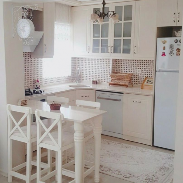 Dapur mini bar dengan warna putihnya yang cantik.