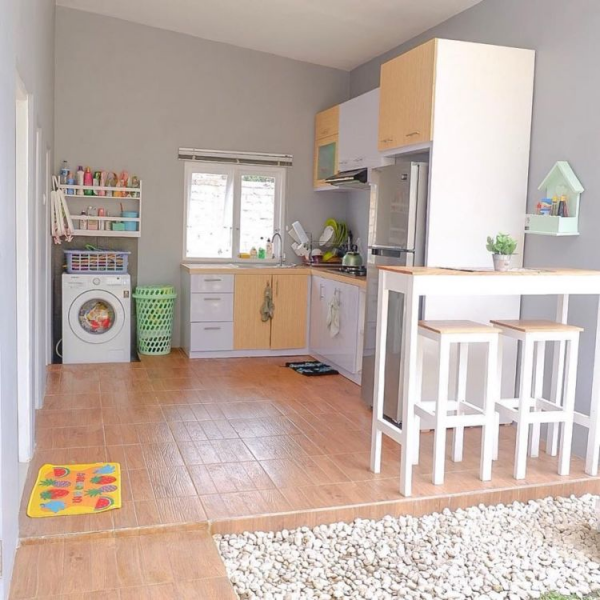 Dapur dengan mini bar yang minimalis ya guys.