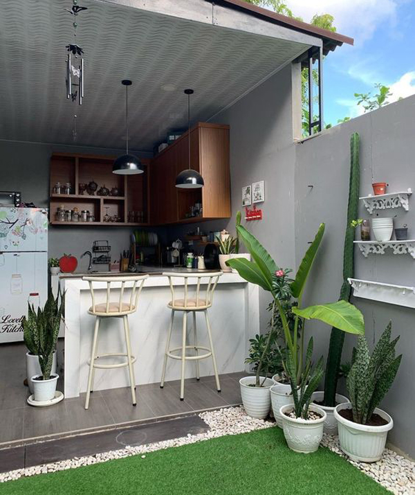 Dapur mini bar konsep semi outdoor yang asri ya guys.