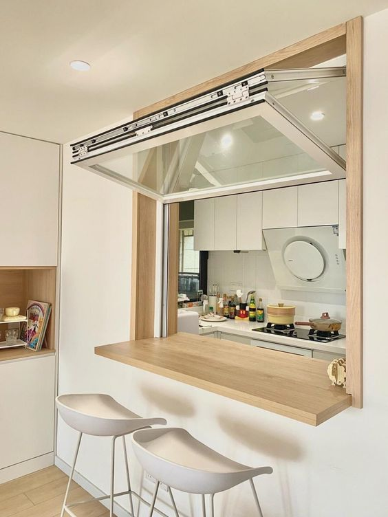 Dapur mini bar dengan jendela lipatnya yang cantik.