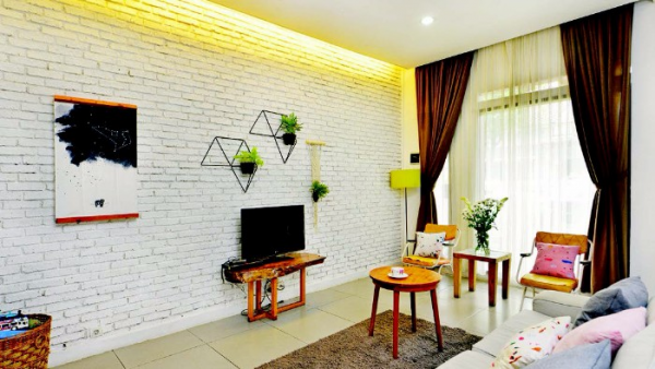 Ruang tamu bata ekspos yang menarik bukan.