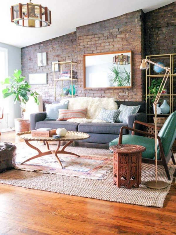 Ruang keluarga dengan dinding bata ekspos yang menawan ya moms.