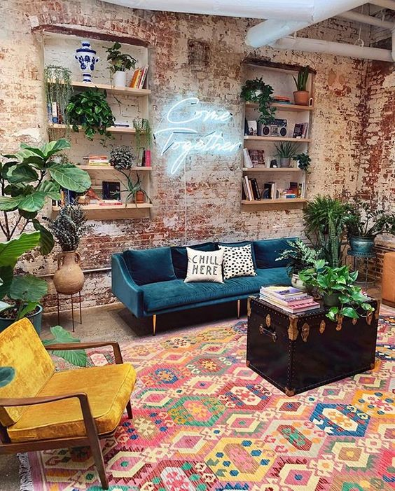 Dekorasi interior bata ekspos yang keren ya moms.