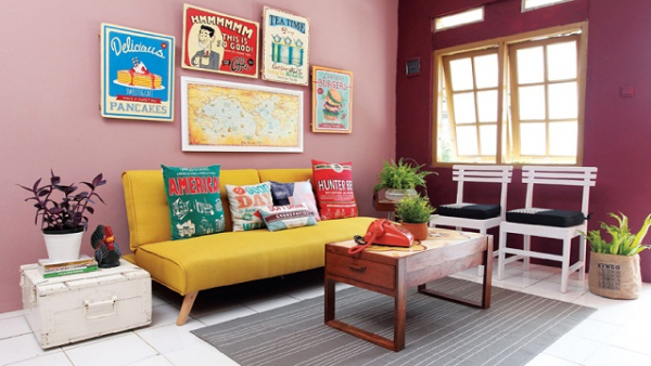 Interior ruang keluarga bergaya pop art yang menarik ya guys.