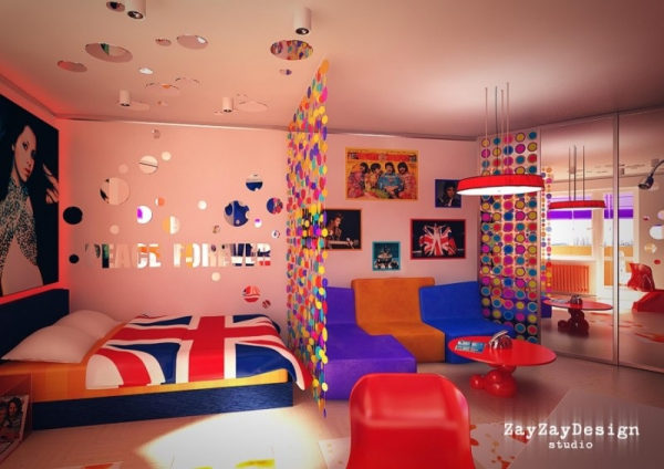 Ini dia penampakan kamar gaya pop art nya yang cantik.