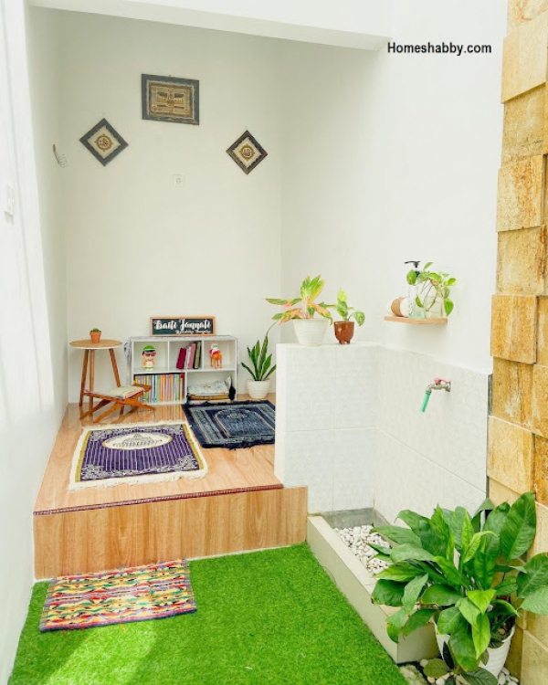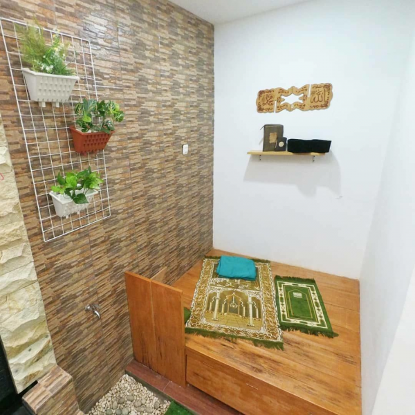 Mushola dalam rumah dengan tempat wudhu yang cantik.