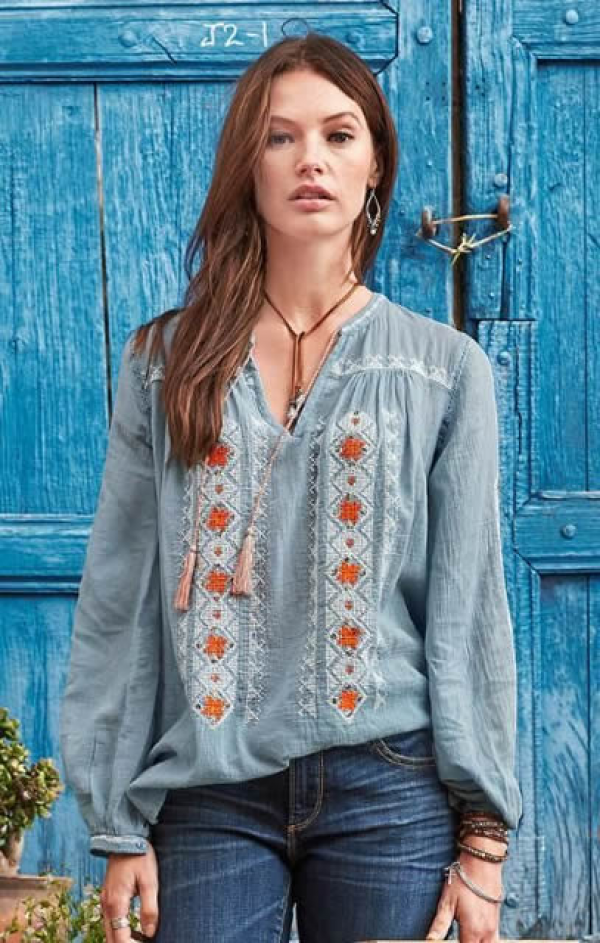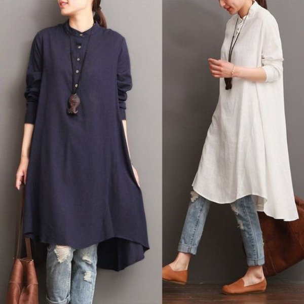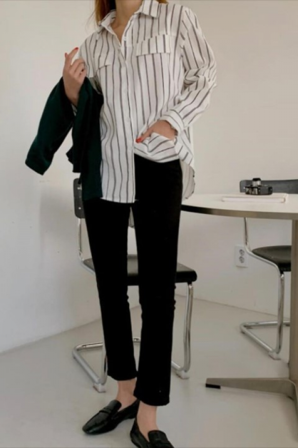 - - Kemeja denim dan celana palazzo - kombinasi ini memberikan kesan casual dan nyaman.