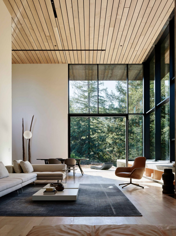 Penggunaan kayu alami memberikan sentuhan alami dan hangat dalam desain interior luxury minimalis. Kayu dapat digunakan pada lantai, dinding, dan furnitur.