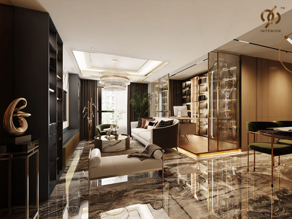 Pemilihan bahan dan tekstur adalah kunci dalam desain ini. Bahan-bahan berkualitas tinggi seperti kayu, marmer, dan kaca digunakan untuk memberikan sentuhan kemewahan yang tahan lama.