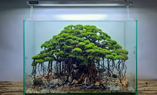 Masih aquascape dengan tema tanaman bonsainya yang keren.