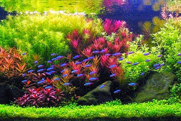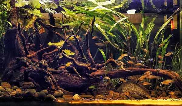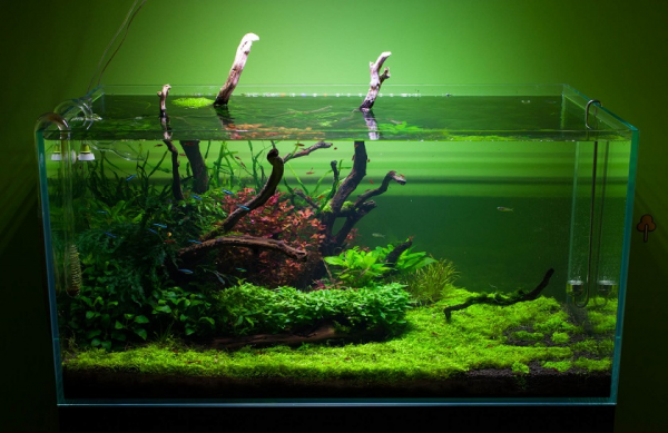 Dengan memunculkan sedikit tumbuhan melebihi aquarium, akan tampak lebih natural lagi.