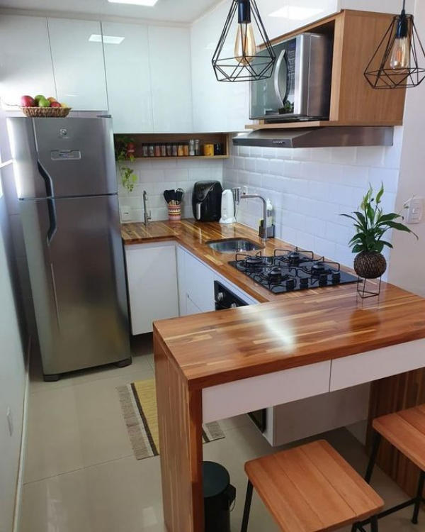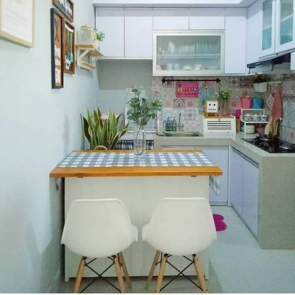 - - Gunakan warna cerah: Warna cerah dapat membantu memperluas tampilan ruangan dan membuatnya terlihat lebih besar. Gunakan warna cerah seperti putih, krem, atau biru muda untuk membuat dapur Anda terlihat lebih cerah dan segar.