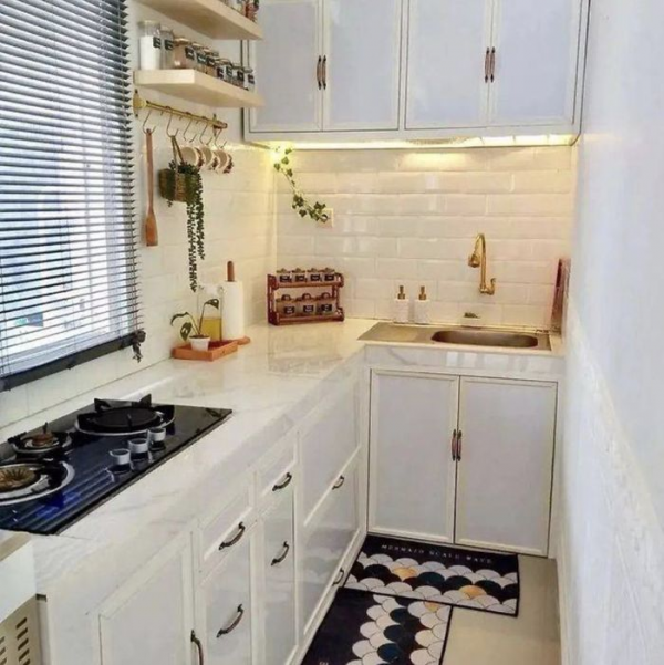 - - Gunakan lampu: Gunakan lampu untuk memperkuat tampilan dapur Anda dan membuatnya terlihat lebih menyala. Gunakan lampu bawah untuk membuat dapur terlihat lebih besar dan lampu atas untuk memberikan cahaya tambahan.