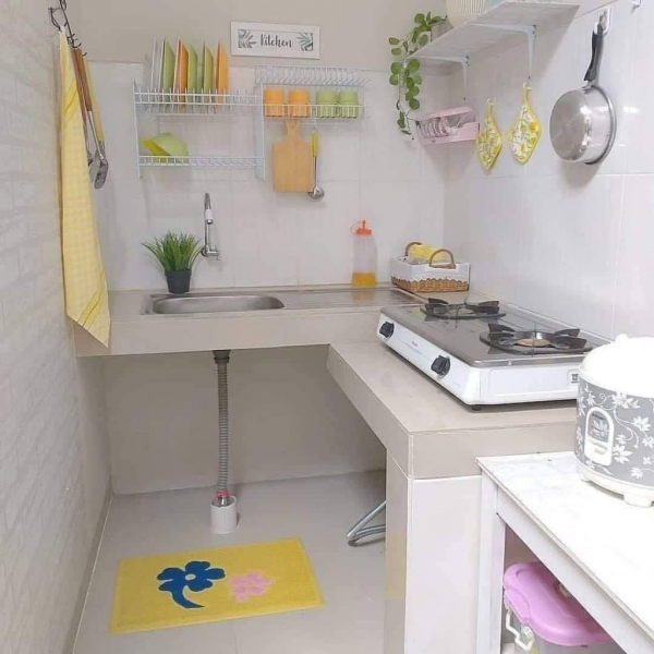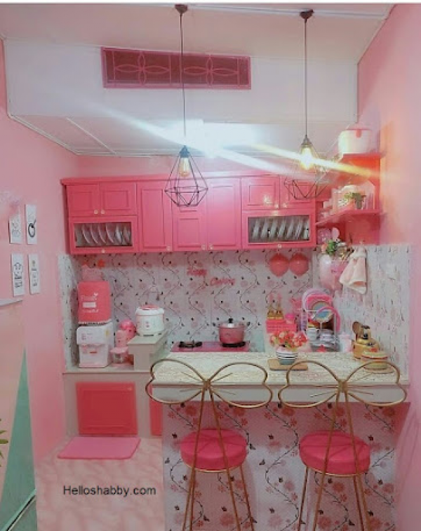 Dapur sederhana dengan warna pink yang cantik ya bun.
