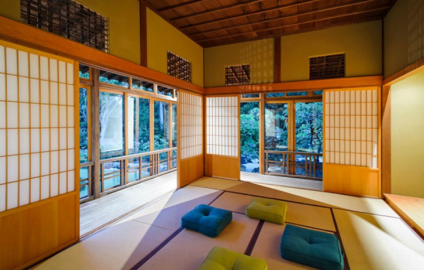 Shoji atau partisi yang terbuat dari kayu dan kertas transpara, mempercantik tuamh Jepang ya moms.