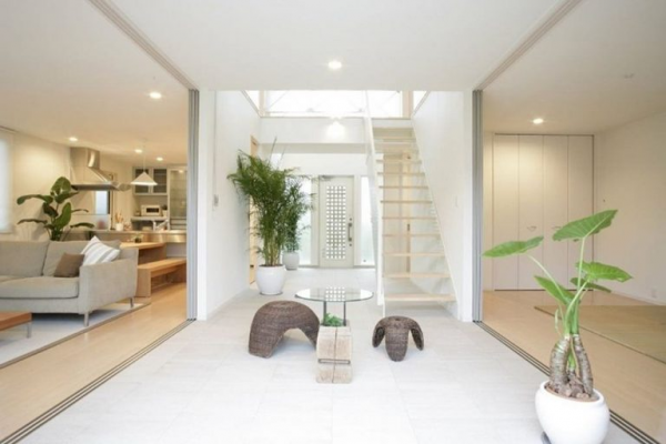 Desain interior rumah Jepang dengan kombinasi putih coklatnya.