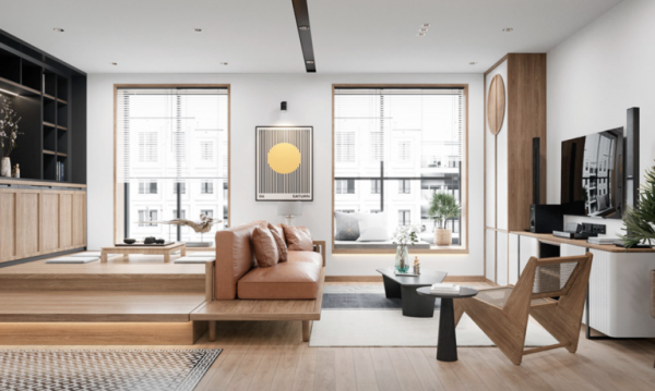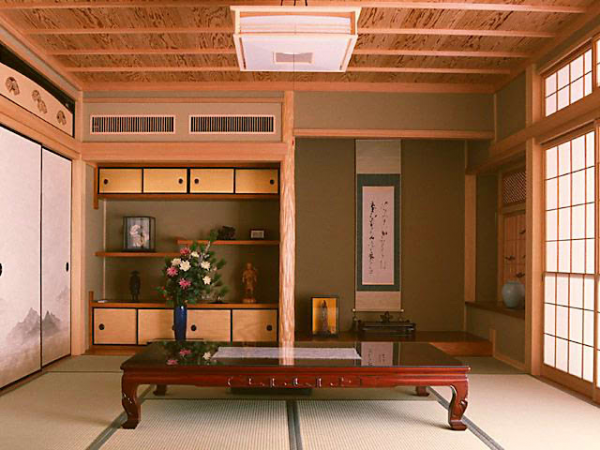 Interior ruang tamu Jepang dengan sentuhan modern.