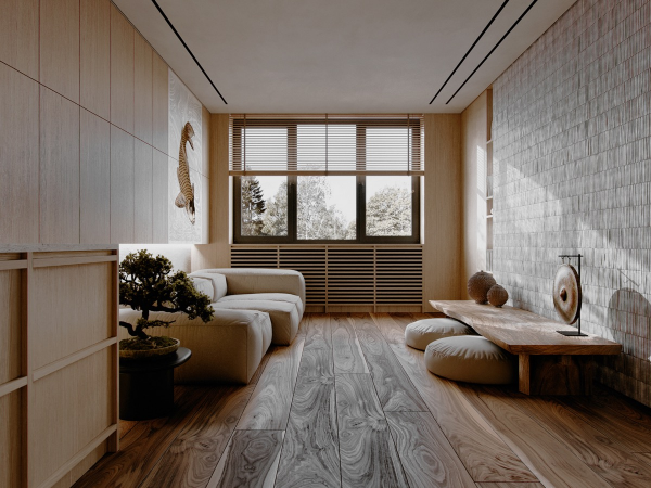 Sentuhan kayu juga merupakan sesuatu yang erat dengan interior Jepang.