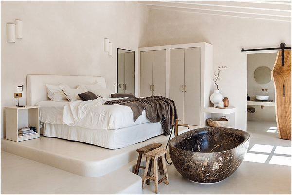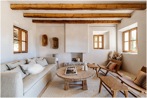Salah satu ciri khas desain interior Ibiza adalah penggunaan bahan alami seperti batu, kayu, dan bambu. Penggunaan furnitur dan aksesoris yang terbuat dari bahan-bahan ini memberikan sentuhan rustik dan organik yang khas. Penggunaan bahan-bahan alami juga berkontribusi pada suasana yang hangat dan nyaman.