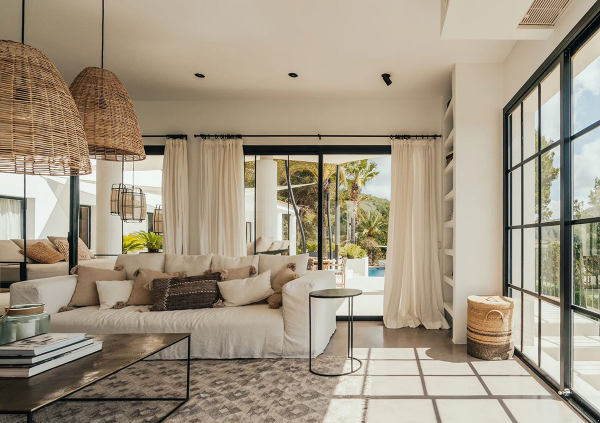 Dalam desain interior Ibiza, penggunaan cahaya alami sangat ditekankan. Ruangan yang terang dan terbuka memberikan kesan yang segar dan menyenangkan. Jendela-jendela besar, atap terbuka, dan pintu kaca besar adalah beberapa elemen yang sering digunakan untuk memaksimalkan cahaya matahari dan pemandangan alam sekitar.