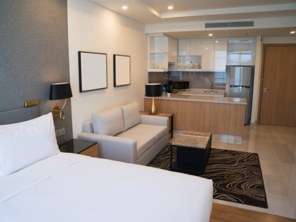 Interior apartemen studio yang mewah ya.