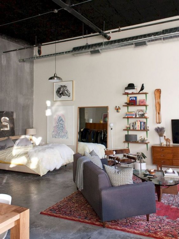 - - Desain industri: Gunakan bahan-bahan seperti besi, kayu, dan kain kanvas untuk memberikan nuansa industri ke ruangan.