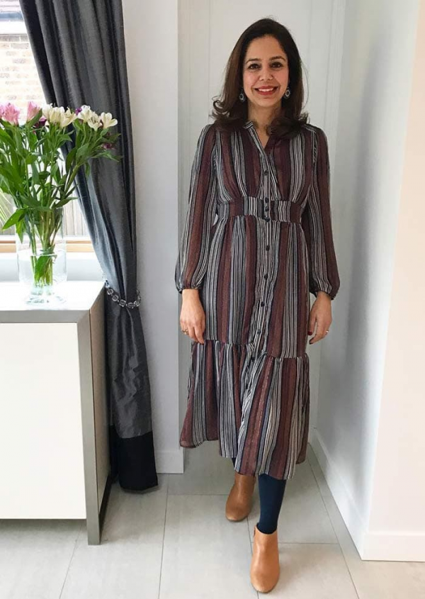 Shirt Dress dengan garis-garis vertikal yang lebih kecil.